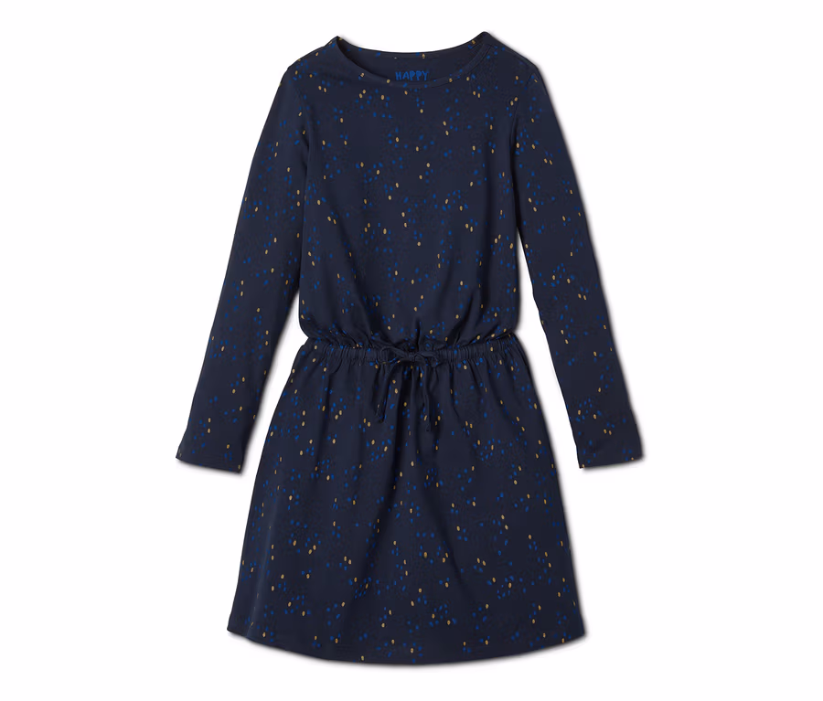 - Dunkelblau mit goldfarben glitzerndem Punkte-Alloverprint