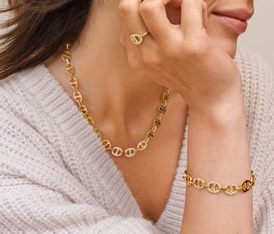 Kette Schiffsanker mit Glaskristallen