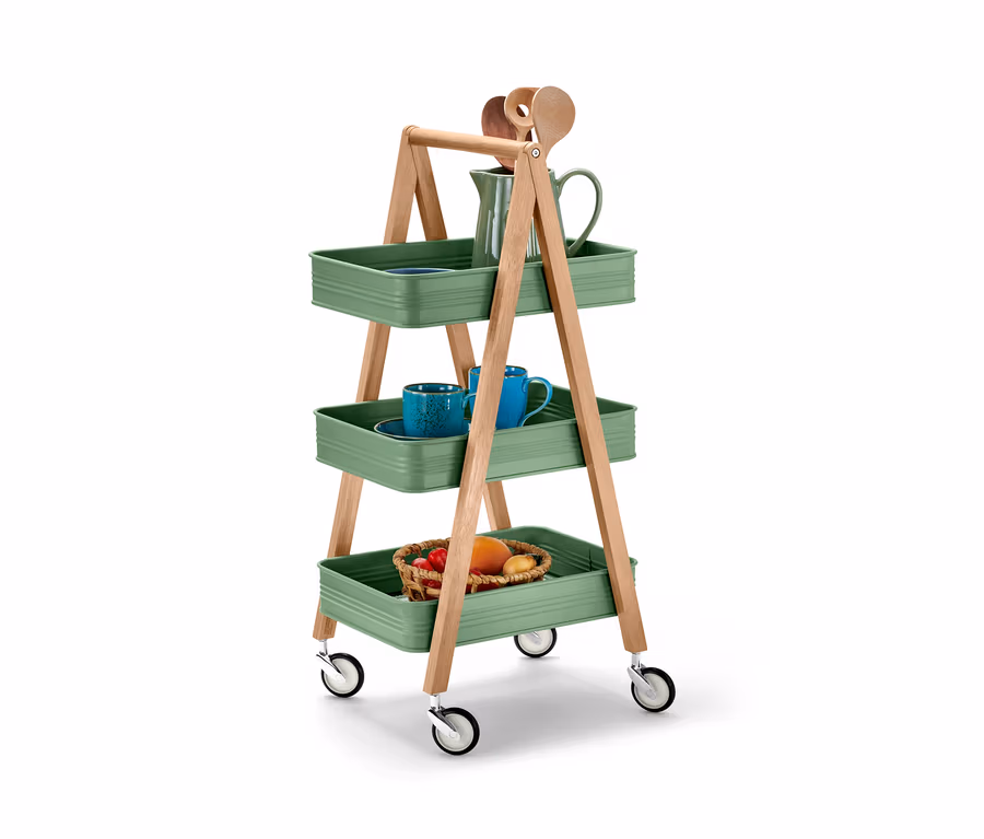 - Rollwagen mit 3 Ablagen für flexiblen Stauraum in der Küche