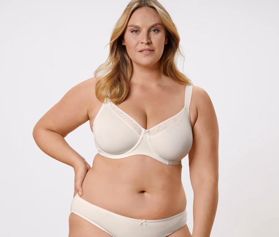 - Spezieller Schnitt – verkleinert den Busen optisch um 1 Cupgröße