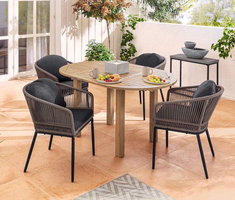 • Sitzschale mit witterungsbeständigem und schnelltrocknendem Textilgeflecht, outdoorgeeignet
