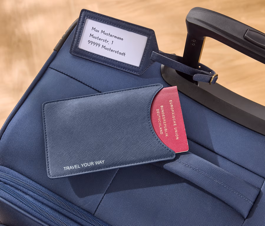- Kofferanhänger mit Adressschild und verstellbarer Schnalle