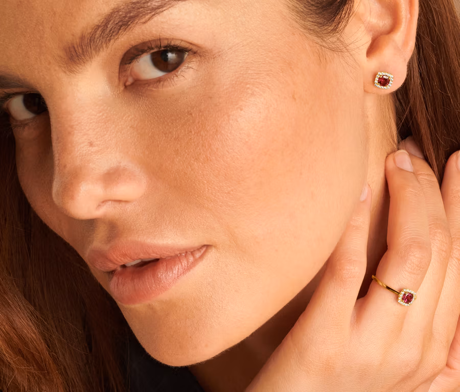 375 Gold Ohrstecker Rhodolith und Zirkonia