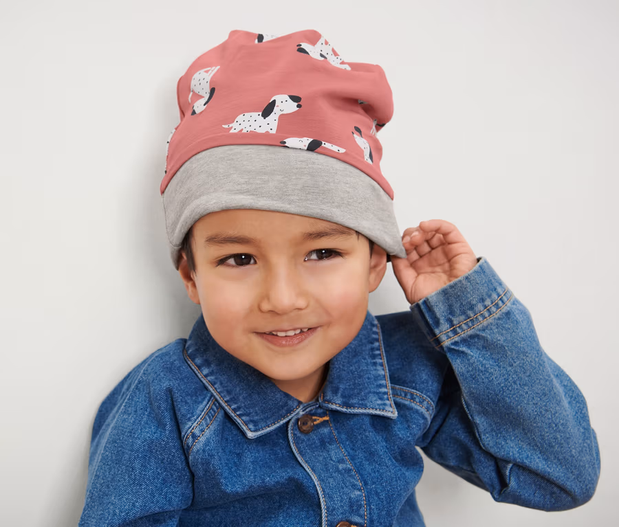 Kinder-Wendemütze, rosa-grau