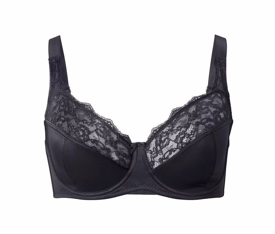 Der BH hat bequeme, extrabreite Träger, die sich in der Länge anpassen lassen, sowie einen 3-fach verstellbaren SoftSeal®-Häkchenverschluss – für einen perfekten Sitz über den ganzen Tag. Optisch kann er mit seinem seidigen Glanz punkten, am Cup und an den Trägern ist er mit zarter, weicher Spitze besetzt.
