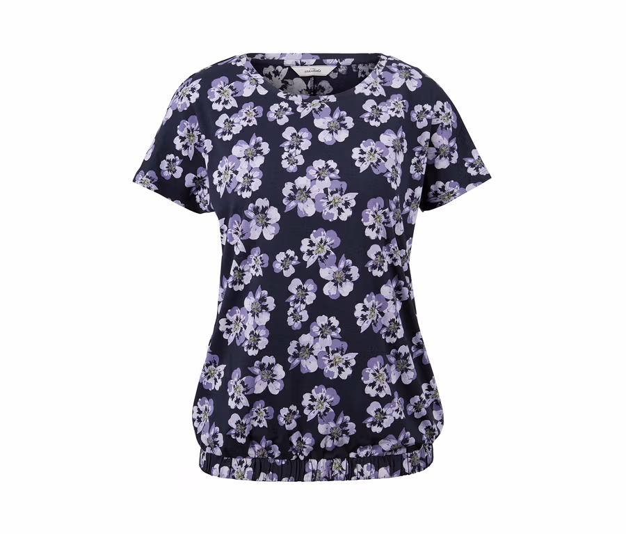 Cooles Basic für warme Tage und entspannte Momente: Dieses Kurzarmshirt in angenehm weich fließender Baumwoll-Viskose-Qualität sitzt ausgesprochen bequem und ist mit seinem floralen Alloverprint ein perfekter Farbtupfer für modische Outfits. Im Rücken hat das Shirt eine Teilungsnaht, die Ärmel sind für einen besonders lässigen Look leicht überschnitten und der breite, elastische Bund am Saum sorgt für einen optimalen Tragekomfort.