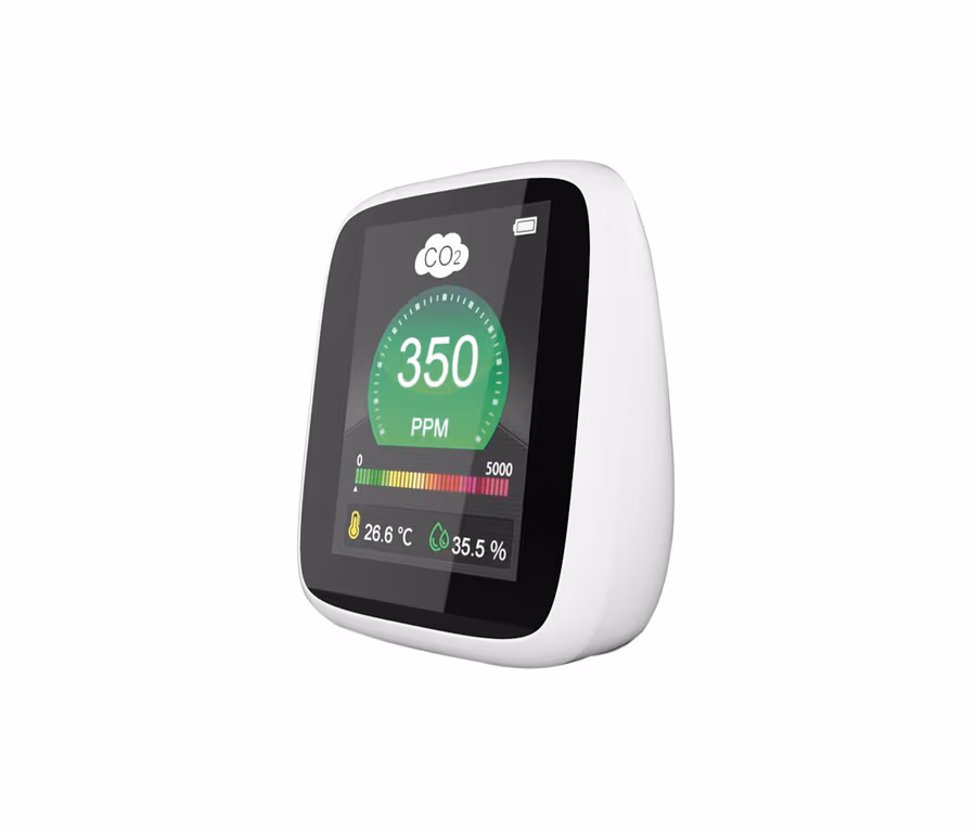 - CO2-Monitor mit Farbanzeige und Alarmsignal