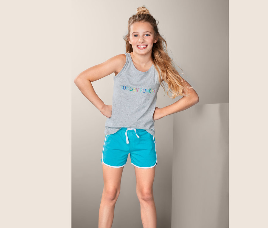 Farbe für die Nacht: Dieser Shorty-Pyjama hat viele bunte Details, die schon morgens Lust machen, in den Tag zu starten. Die türkisen Shorts sind kontrastfarbig einpaspeliert, während das graue Top mit mehrfarbigem Neps-Yarn gearbeitet ist. Doch der Schlafanzug sieht nicht nur cool aus, er ist auch superbequem! Mit seiner Single-Jersey-Qualität aus reiner Baumwolle liegt er jederzeit angenehm weich auf der Haut. Die Hose lässt sich mit ihrem innenliegenden Bund in der Weite regulieren, was für zusätzlichen Komfort sorgt. Weiterer Pluspunkt: Shorts und Top sind GOTS zertifiziert.