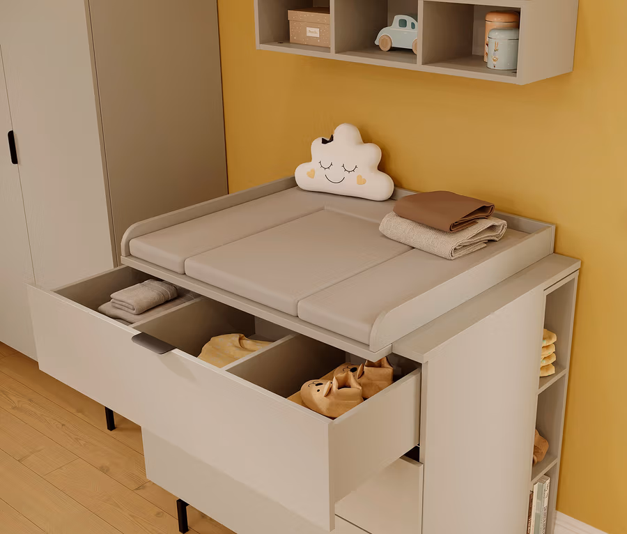 - »Tomino«-Set: Kommode mit abnehmbarem Wickelaufsatz für flexiblen Komfort im Kinderzimmer