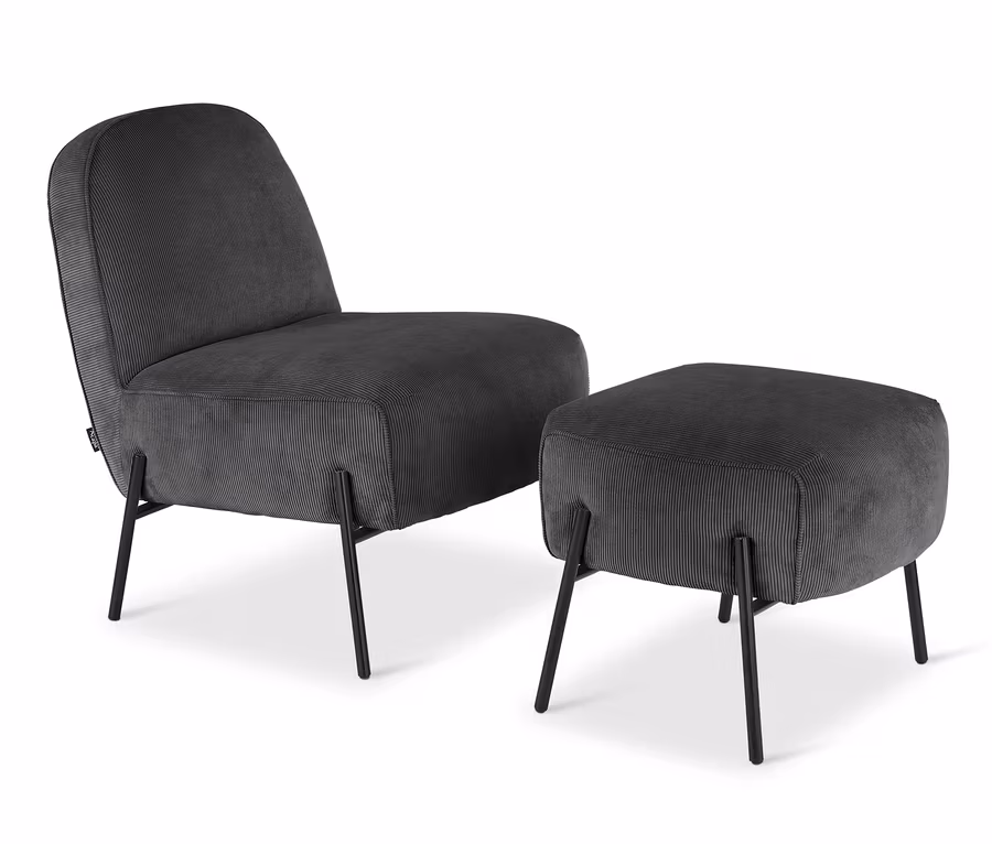 - Hochwertiges Design und Komfort verbinden diesen platzsparenden Sessel und Hocker