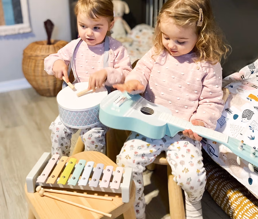 - Mit Gitarre, Xylophon und Trommel erlernen Kinder ein erstes Gespür für Rhytmus und Klang