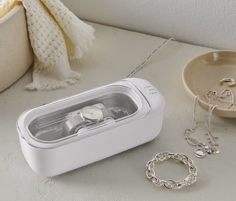 - Reinigt Schmuck, Diamanten, Brillen, Sonnenbrillen, Kontaktlinsen-Zubehör, optische Linsen, Zahnersatz, Kämme, Zahnbürsten, elektronische Rasierköpfe, Rasierapparate