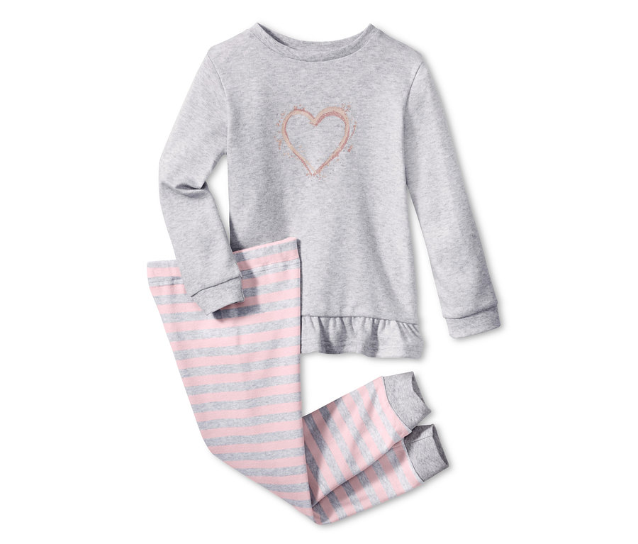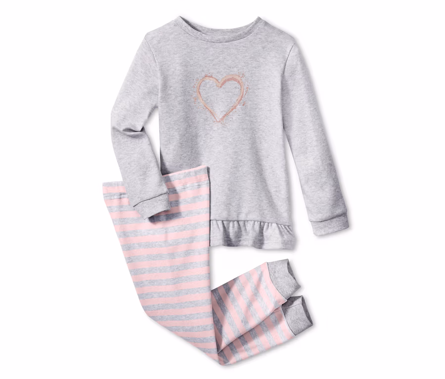 In diesem weichen Pyjama fühlen sich Kinder sofort wohl: Der Schlafanzug ist aus reiner, Bio-Baumwolle gefertigt und bietet damit die besten Voraussetzungen für eine gute Nacht und schöne Träume. Die bequeme Hose hat einen weitenregulierbaren Bund und formstabile Rippbündchen an den Beinabschlüssen. Das Oberteil ist mit einem Rüschensaum versehen und hat vorne einen niedlichen Glitzerprint in Herzform.