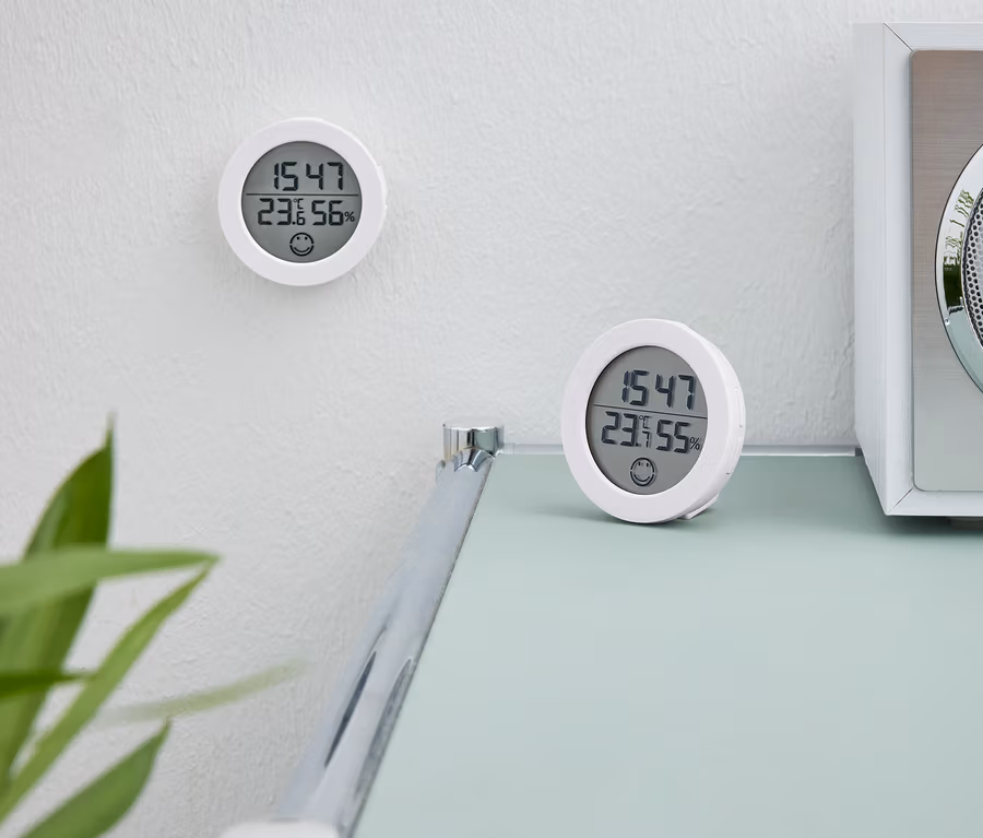 • Zeigt Temperatur, Luftfeuchtigkeit und Uhrzeit an