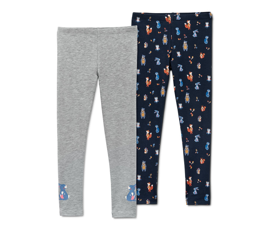 - 1x dunkelblau mit mehrfarbigem Tier-Alloverprint, 1x grau meliert mit Hasen-Motiv