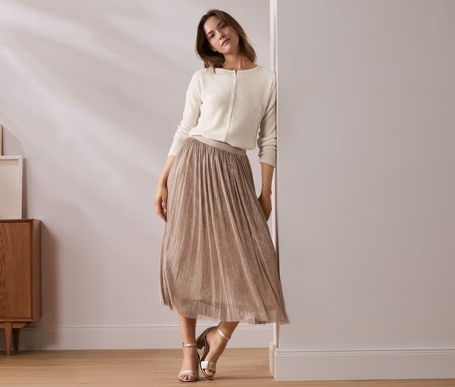 - Plisseerock mit glänzendem Effektgarn