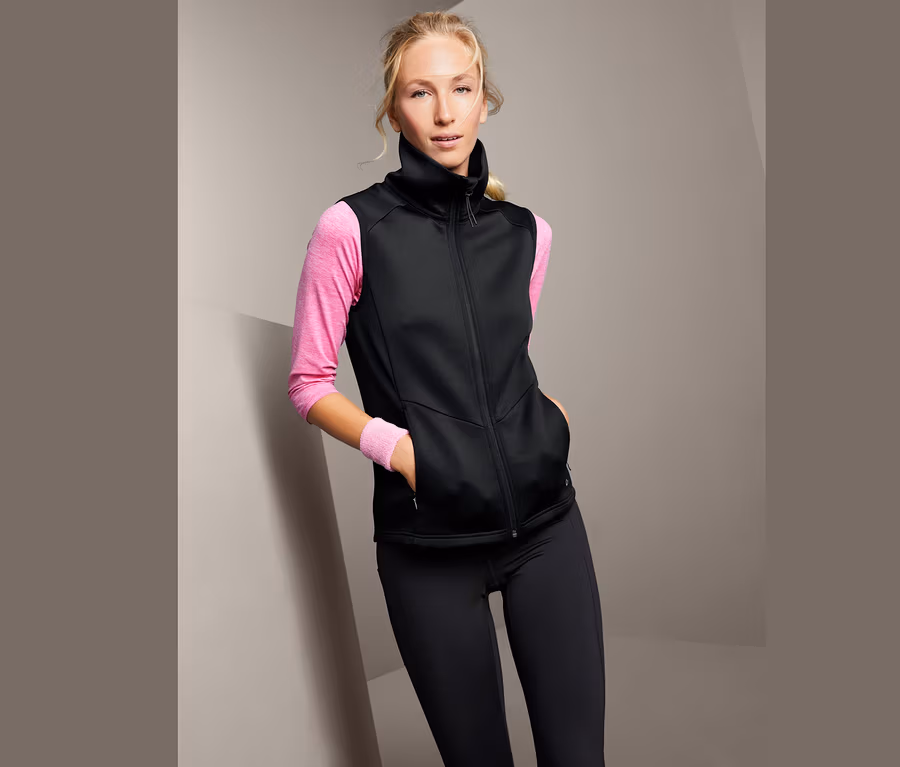 Die Damenweste hat zwei Reißverschluss-Eingrifftaschen und ist mit einer DryActive Plus-Ausrüstung gearbeitet, die sie besonders outdoortauglich macht: Sie ist atmungsaktiv, feuchtigkeitstransportierend und schnelltrocknend, Elasthan hält sie gleichzeitig in Form und sorgt für einen perfekten Sitz. Der leicht taillierte Schnitt unterstreicht die feminine Silhouette und der hohe Kragen schützt die empfindliche Halsregion zusätzlich vor kaltem Wind.