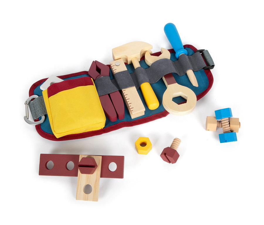 - Inkl. Werkzeuggürtel, Schraubendreher, Schraubenschlüssel, Hammer, Zange, Zollstock, großer Lochleiste, 2 kleiner Lochleisten, 2 kleiner Schrauben, 2 großer Schrauben, 4 Muttern und Karabiner