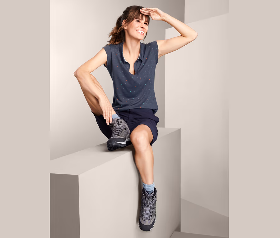Dieses Top ist der ideale Begleiter für warme Sommertage. Sein cooler V-Ausschnitt mit dem schmalen Kragen, die legere Passform und der abgerundete Saum sorgen für einen modernen und schicken Look. Die weich fließende Viskose-Mischqualität verstärkt den edlen Effekt des Damenoberteils. Übrigens sieht das Kleidungsstück nicht nur gut aus, sondern ist dank DryActive Plus-Ausrüstung auch atmungsaktiv, feuchtigkeitstransportierend und schnelltrocknend.