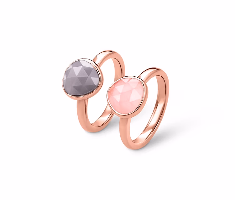 Diese beiden Silberringe sind absolute Eyecatcher: Verziert mit einem grauen Chalcedon oder einem rosafarbenen Rosenquarz zeigen sie, wie viel Spaß Schmuck machen kann. Ob einzeln oder zusammen getragen: Die hochwertige Rosévergoldung und die Edelsteine verschönern in ihrer Kombination jeden Look. Das Schmuckzertifikat ist ein weiterer Beweis für die Qualität des Ring-Sets.