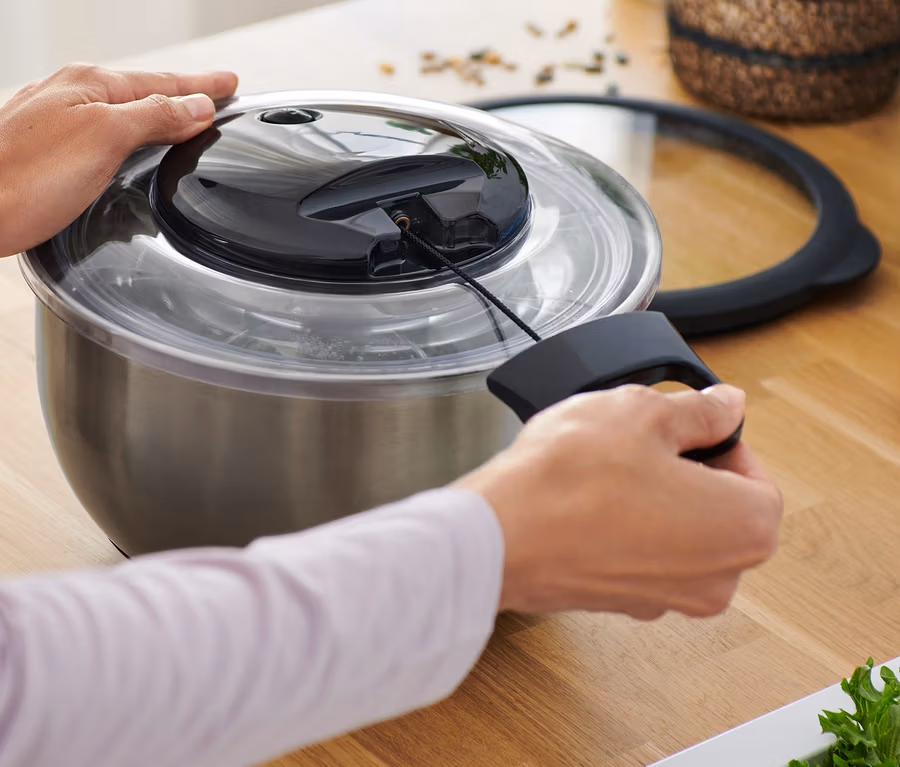 Edelstahl-Salatschleuder mit Deckel