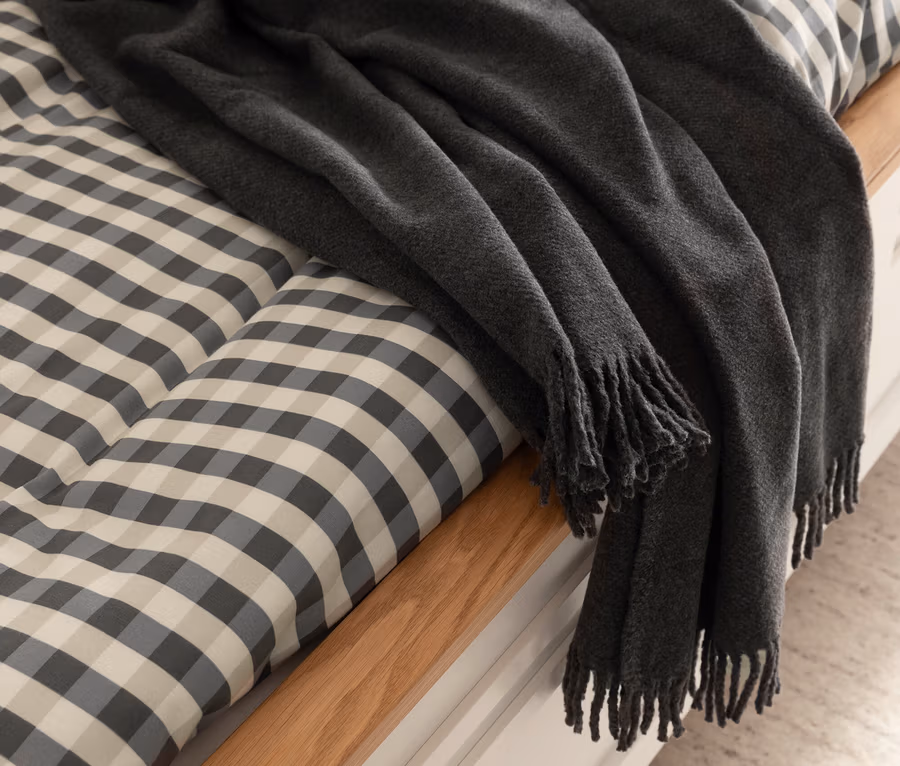 - Um der Decke ihren flauschigen Griff und die besonders kuschelige Oberfläche zu verleihen, wird das Gewebe im Produktionsverfahren mechanisch aufgeraut. Durch das Aufrauen können sich bei den ersten Nutzungen lose Fasern lösen, was zu einer Fusselbildung führen kann. Dies ist ganz normal und kein Qualitätsmangel. Die Fusselbildung lässt nach kurzer Zeit deutlich nach, da sich die Faserstruktur stabilisiert. Ein erstes Waschen oder vorsichtiges Ausschütteln kann diesen Prozess zusätzlich beschleunigen. Vor der ersten Nutzung empfehlen wir einmaliges Waschen. Intensivfarben vor dem ersten Gebrauch separat waschen. Schützen Sie die Decke vor direkter Sonneneinstrahlung, um die Farbintensität zu erhalten.