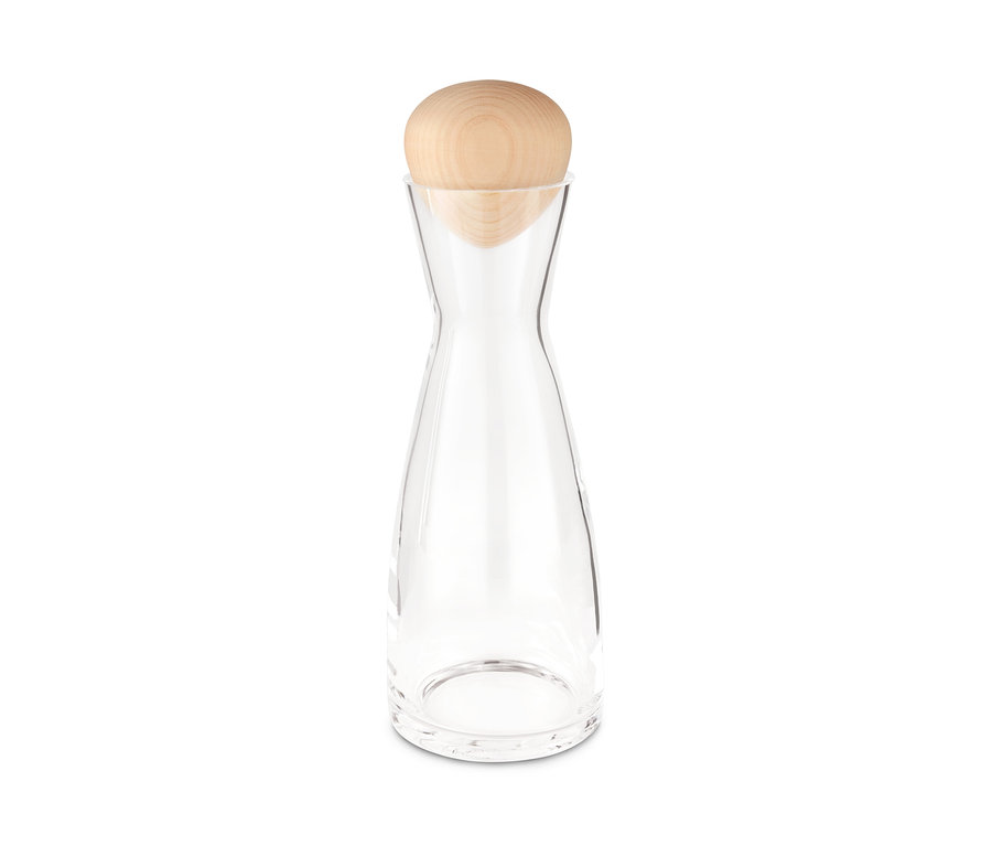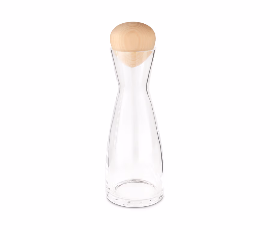 - Hochwertige Glaskaraffe mit einem Verschluss aus Zirbenholz
