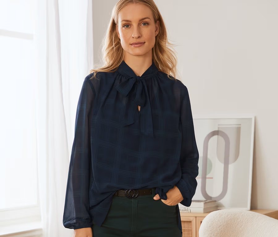 - Abgerundeter Saum mit verlängerter Rückenpartie und Seitenschlitzen