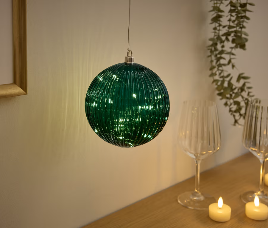 - Glaskugel grün mit matt goldfarbenem Element