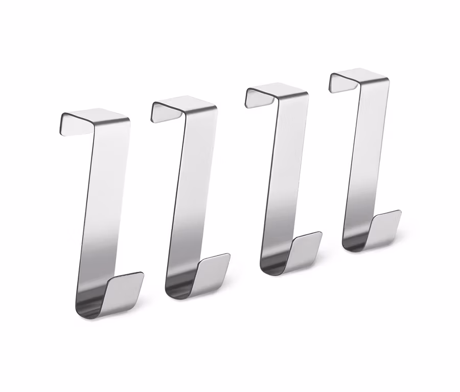 Auch bei begrenztem Platz gibt es in der Regel noch jede Menge ungenutzten Stauraum – zum Beispiel an der Tür. Dafür gibt es diese stilvollen Türhaken aus hochglanzpoliertem Edelstahl. Mit ihrem schlichten Design passen Sie zu jeder Einrichtung und lassen sich einfach an der Oberkante einer Tür einhängen, ohne dass man bohren oder kleben muss. Jeder Haken bekommt zwei Silikonklebepunkte, die ein Klappern verhindern und die Tür schonen.