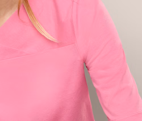 Dieses Halbarmshirt mit Bio-Baumwolle ist als Basic bei nahezu jedem Outfit die richtige Wahl. Der leicht taillierte Schnitt in Kombination mit der wunderbar weichen Baumwoll-Stretch-Qualität machen das Tragen besonders angenehm. Dazu bleibt das Damenshirt durch Elasthan formbeständig und sitzt perfekt – egal ob morgens zum Brunch oder abends zum Feiern. Der modisch geschnittene Ausschnitt setzt dabei einen coolen Akzent.
