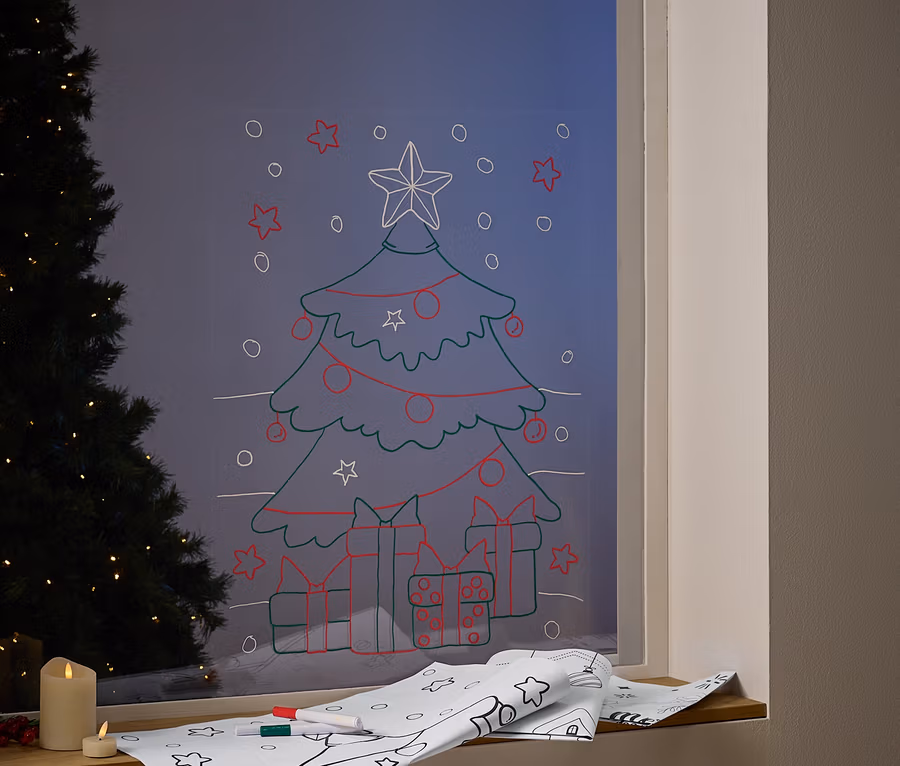 - Motiv lässt sich einfach hinter die Fensterscheibe kleben und von innen nachzeichnen