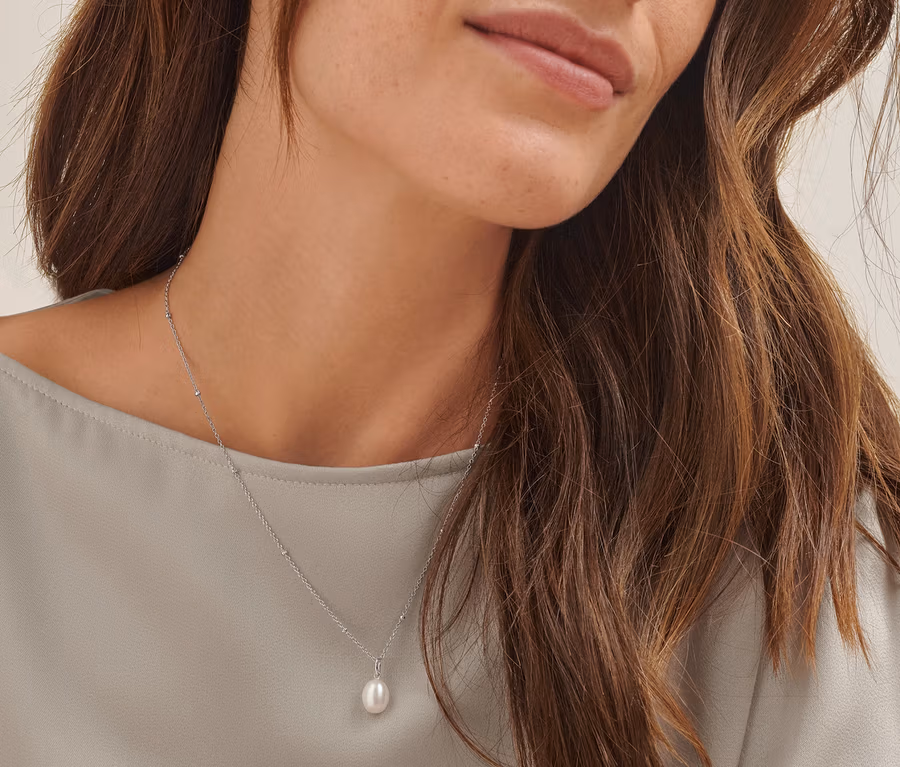 Kette, 925 Silber rhodiniert, mit Süßwasserzuchtperle