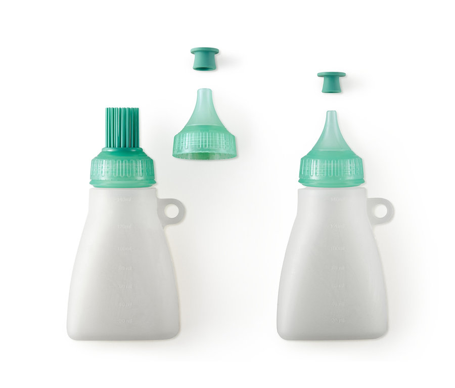 Beide Flaschen sind spülmaschinen- und mikrowellenfest und können mit den beiden luftdichten Verschlusskappen auch zum Aufbewahren von Resten genutzt werden. Zudem sind sie auch beim Backen eine echte Hilfe: In den hitzebeständigen Gefäßen kann man problemlos Schokolade schmelzen oder auch Zuckerguss für die Kuchenglasur herstellen.