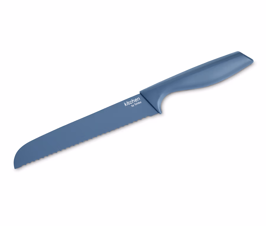 Ob weiche Brioche, knuspriges Baguette oder festes Kastenbrot: Dieses Brotmesser schneidet mit seiner langen, scharfen Klinge mit klassischem Wellenschliff in jedem Fall saubere Scheiben – und das auch, wenn die mal etwas dünner ausfallen sollen. Die konisch geschliffene Klinge ist aus gehärtetem Klingenstahl gefertigt und ihre Antihaftbeschichtung sorgt dafür, dass sie sich auch nach dem Schneiden von reichhaltigem Vollkornbrot einfach reinigen lässt. Der rutschhemmende Kunststoffgriff ist ergonomisch geformt und ermöglicht so ein sicheres und komfortables Brotschneiden.