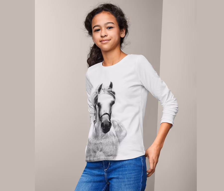 - Kinder-Longsleeve mit veredeltem Pferde-Print – vielseitig kombinierbar
