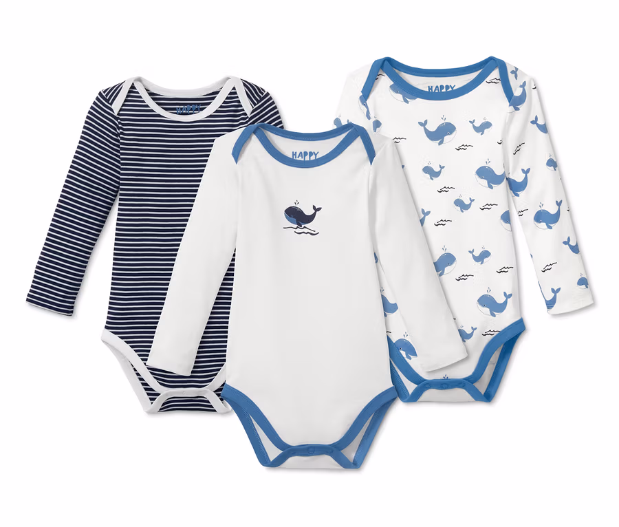 Das Kleidungsstück, in dem sich Babys rundum wohlfühlen: der Body. Das Set aus 3 Langarmbodys ist in formbeständiger Feinripp-Qualität gefertigt, die reine Baumwolle mit GOTS Zertifizierung macht sie weich und anschmiegsam. Besonders wickelfreundlich sind die hautsympathischen Bodys in Größe 50/56 bis 62/68: Sie lassen sich durch ihre Druckknöpfe an der Seite und im Schritt komplett öffnen und dadurch besonders schnell an- und ausziehen, die Bodys in Größe 74/80 bis 98/104 sind mit Druckknöpfen im Schritt ausgestattet – für ein einfaches Hineinschlüpfen!