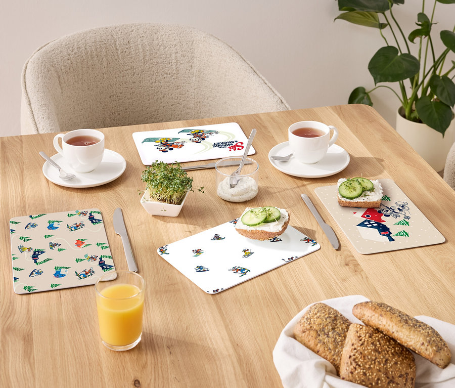 - 2x creme mit Motiv, 2x weiß mit Motiv