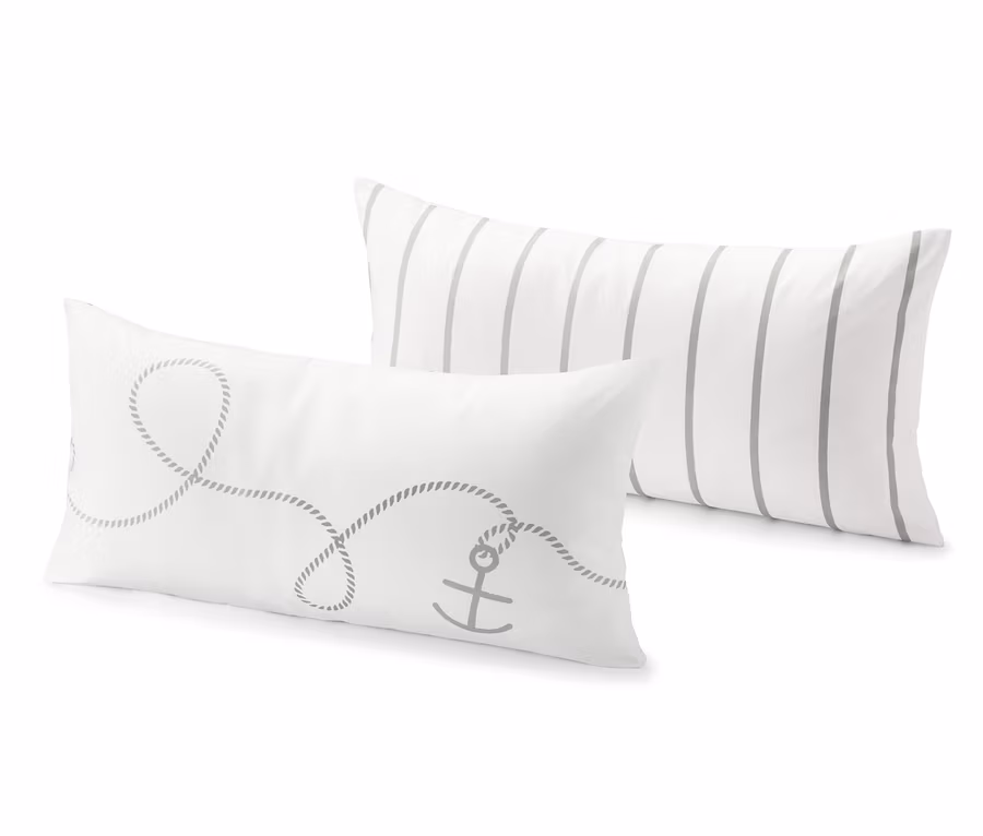 - 1 Seite grau mit weißem Seefahrt-Print, 1 Seite grau-weiß gestreift
