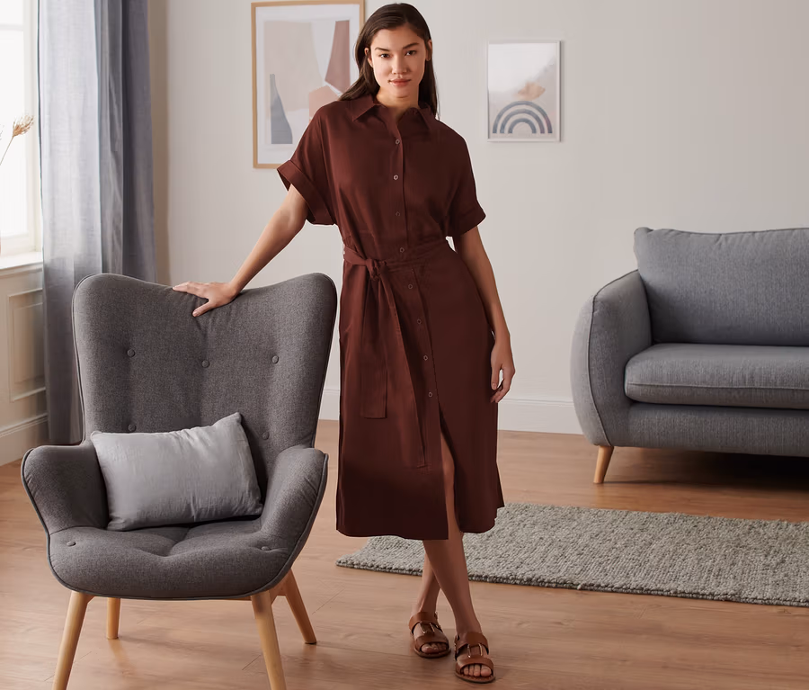 Hemdblusen-Kleid aus Leinenmix