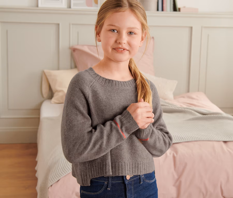 - Rippbündchen an Rundhalsausschnitt und Saum