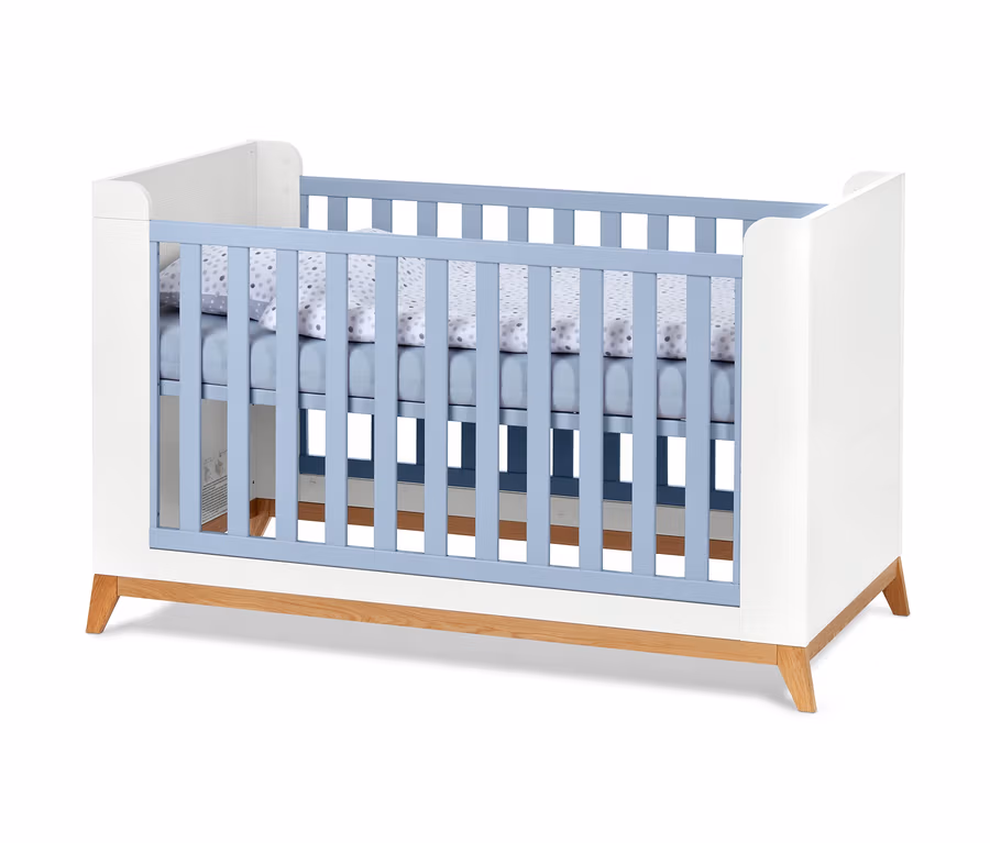 Das Bett kann jeweils an das Alter und an die Bedürfnisse des Kindes angepasst werden: So wird aus dem Babybett im Handumdrehen ein Bett für Kleinkinder. Dafür lässt sich die Sprossenbegrenzung wahlweise einseitig oder komplett abbauen. Dann noch jeweils das Kopf- und Fußteil anpassen – fertig.