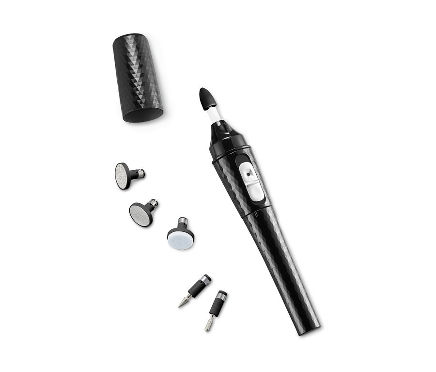 Tschüss, Nagelstudio! Mit diesem handlichen Maniküre- und Pediküre-Gerät kann man die Nagelpflege ganz einfach zu Hause erledigen – und das gesparte Geld schön in einen edlen Nagellack investieren. Das Gerät lässt sich mit zwei Geschwindigkeiten sowie Rechts- und Linkslauf betreiben. Es hat einen ergonomischen Griff und eine integrierte Beleuchtung, die bei der Hand- und Fußpflege für optimale Lichtverhältnisse sorgt.