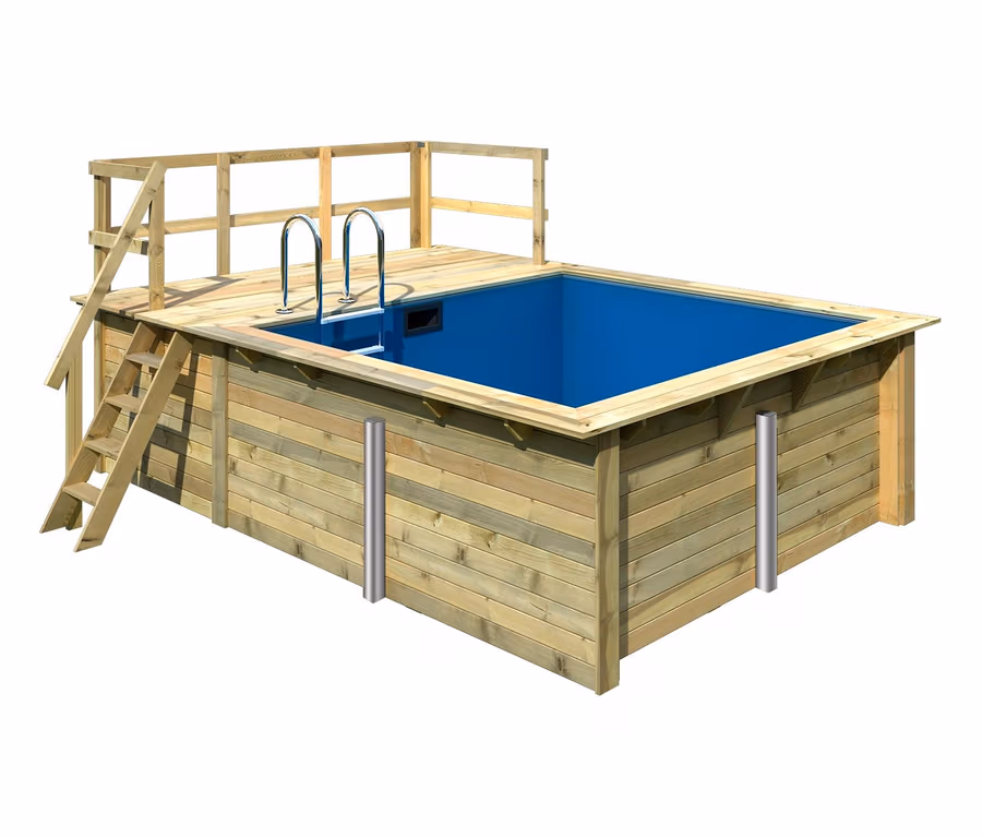 - Inkl. Edelstahl-Einstiesgleiter und Holz-Außenleiter