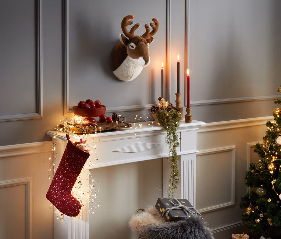 Die Weihnachtszeit ist eine besinnliche und beschauliche Zeit – von bierernst war aber nie die Rede. Mit diesem plüschigen Elchkopf können Deko-Fans ihr Repertoire für Weihnachten deshalb um ein ganz besonderes Stück erweitern – der Charakterkopf kann nämlich auch singen. Der Elch kennt drei verschiedene Weihnachtslieder, die er entweder per Knopfdruck abspielt oder wenn der Lichtsensor aktiviert ist. Dazu bewegt er den Mund und die LED-Lämpchen am Geweih fangen an zu leuchten. Aufhängen lässt sich die Dekoration ganz einfach mit der Schlaufe an der Rückseite.