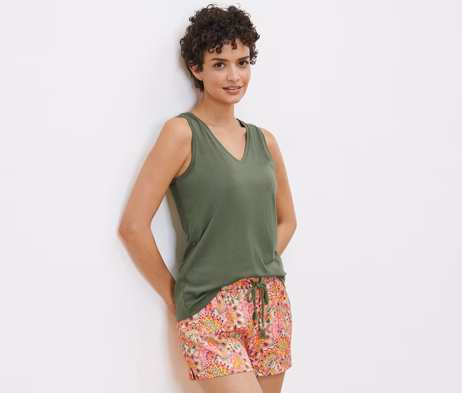 - Shorts aus leichter gewebter Viskose – mit Gummizug und Bindeband