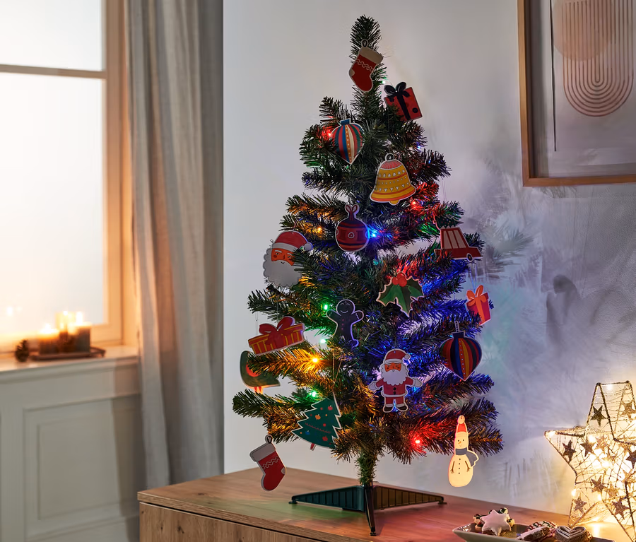- Mit 30 Baumschmuck-Anhängern aus Papier – 15 bedruckt und 15 individuell gestaltbar