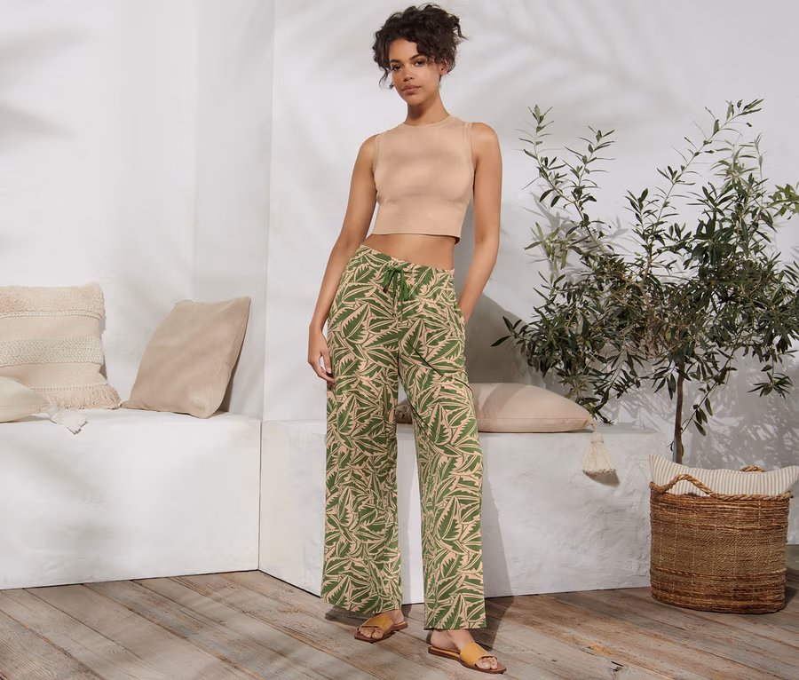 Bedruckte Palazzohose, grün-beige
