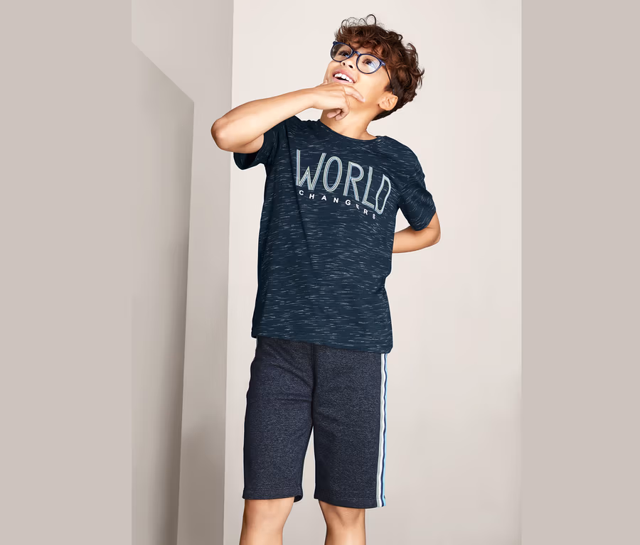 Das T-Shirt gehört auch bei Kindern zu den beliebtesten Kleidungsstücken, weil es so schön unkompliziert ist. Und diese beiden Shirts sind dazu auch noch superbequem: Sie sind in weicher Single-Jersey-Qualität mit einem hohen Anteil an Bio-Baumwolle gefertigt und liegen angenehm locker am Körper. Beide T-Shirts haben eine besonders lässige Flammgarn-Optik, eins davon ziert zusätzlich der Schriftzug »World Changers«.