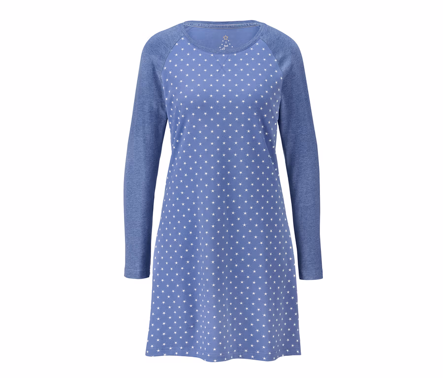 Ich seh den Sternenhimmel ... Auf diesem Nachthemd bitten unzählige kleine Sternchen zum nächtlichen Rendezvous. Das schöne Stück ist aus einem traumhaft weichen Materialmix mit Baumwolle und Viskose gefertigt und dank Elasthan himmlisch auch in puncto Tragegefühl. Es hat Raglanärmel, kleine Seitenschlitze und – als besonderes Detail – eine hübsche V-Steppung am Ausschnitt. Nachtwäsche zum Träumen!